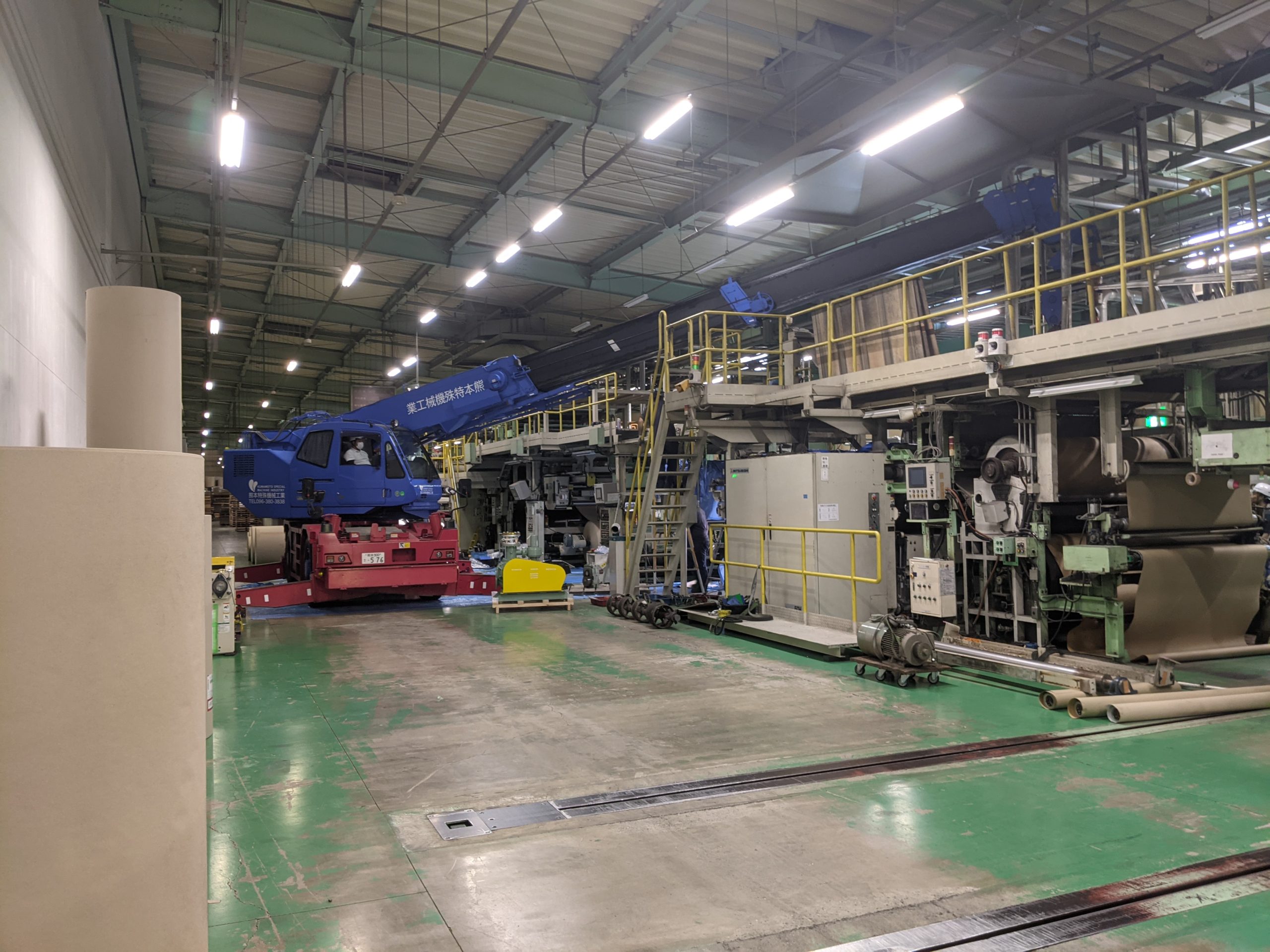 工場内でのクレーン作業で最大重量5.6tの重量物まで有りましたが全て順調に作業出来ました。