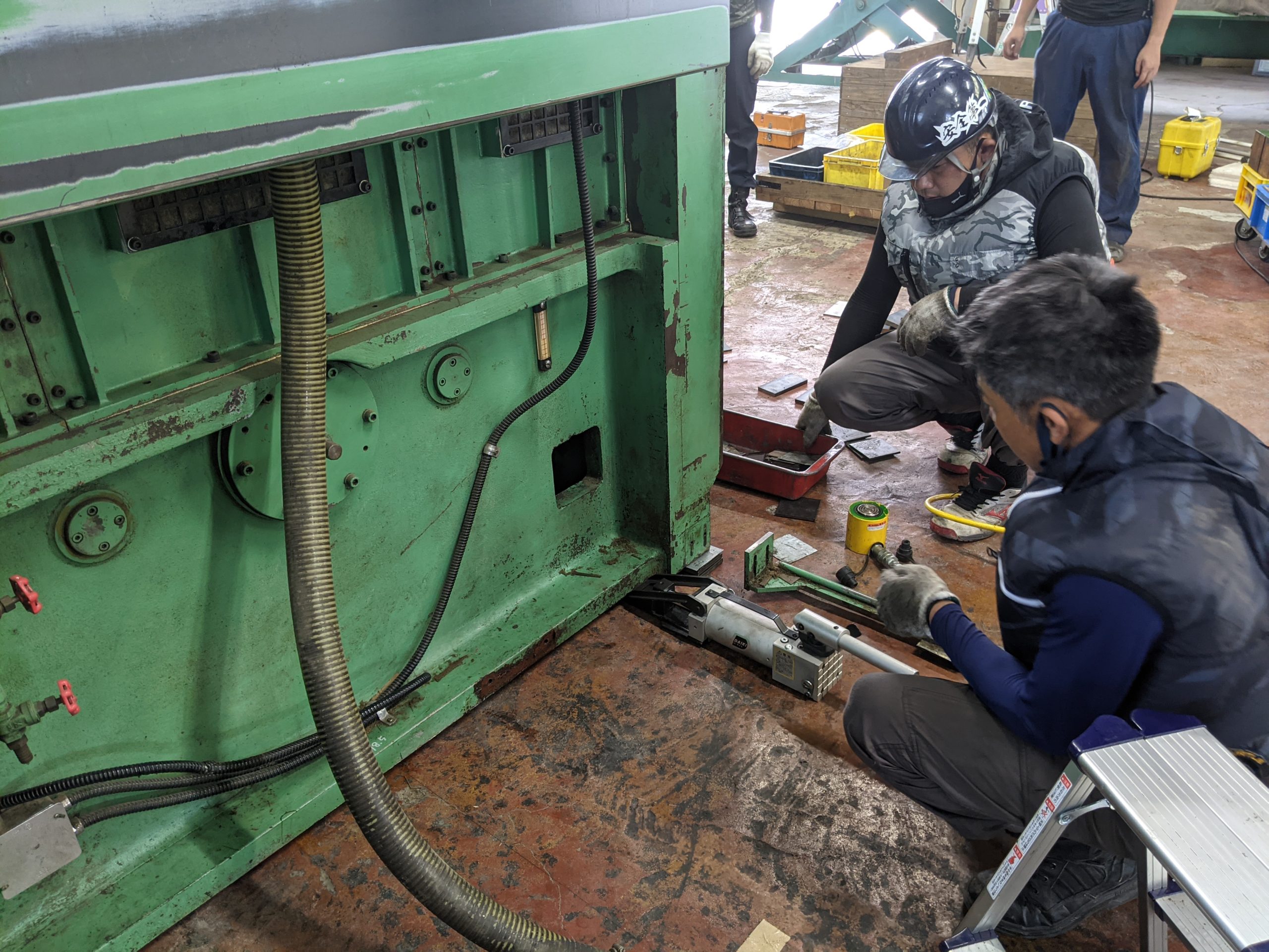 週末 九州地方某工場様へお邪魔して、平抜き機の移設工事を実施させて頂きました。