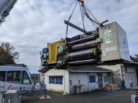 今回は熊本県の某工場様へお邪魔し、シングルフェイサーの搬入工事を実施させて頂きました。