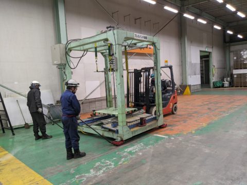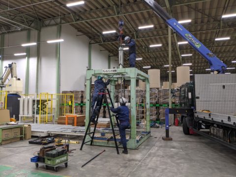 工事事前打ち合わせで、機械高さが移設通路をクリア出来ない問題等、機械メーカー様と打ち合わせ出来た事により、当日は部品解体、移設、再組み立て、全ての工程がスムーズに進行出来ました。